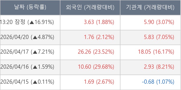 ※ 사모펀드 등 일부 기관의 순매매량은 표시되지 않음