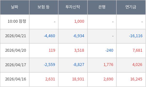 [표] 주요 기관별 순매매량 (단위 주)
