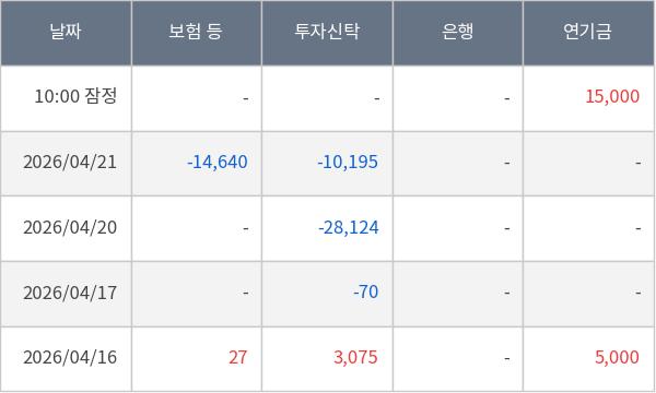[표] 주요 기관별 순매매량 (단위 주)