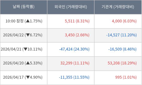 ※ 사모펀드 등 일부 기관의 순매매량은 표시되지 않음