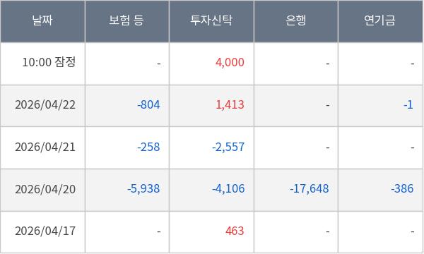 [표] 주요 기관별 순매매량 (단위 주)