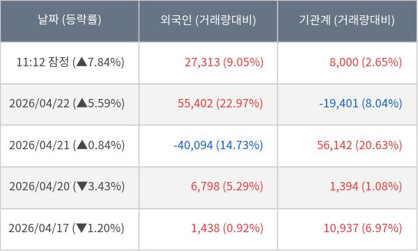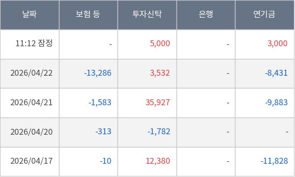 [표] 주요 기관별 순매매량 (단위 주)