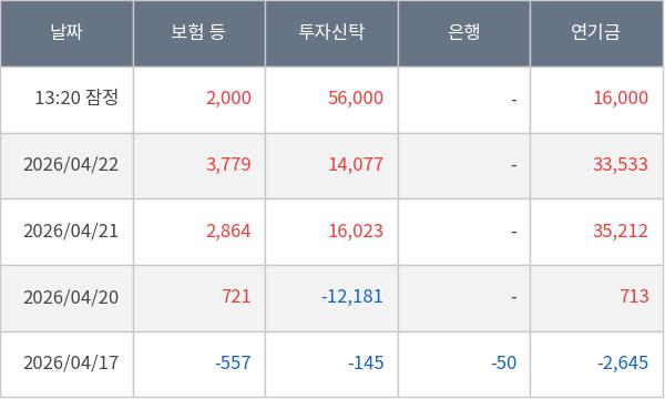 [표] 주요 기관별 순매매량 (단위 주)