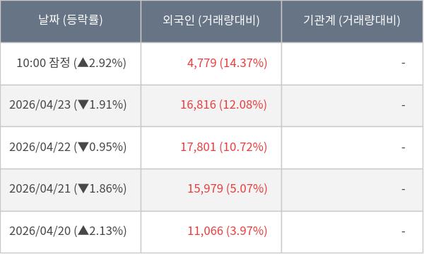 [표] 외국인ㆍ기관 순매매량 (단위 주)
