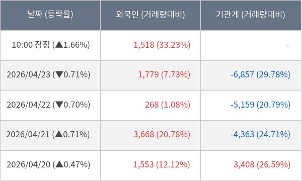 [표] 외국인ㆍ기관 순매매량 (단위 주)
