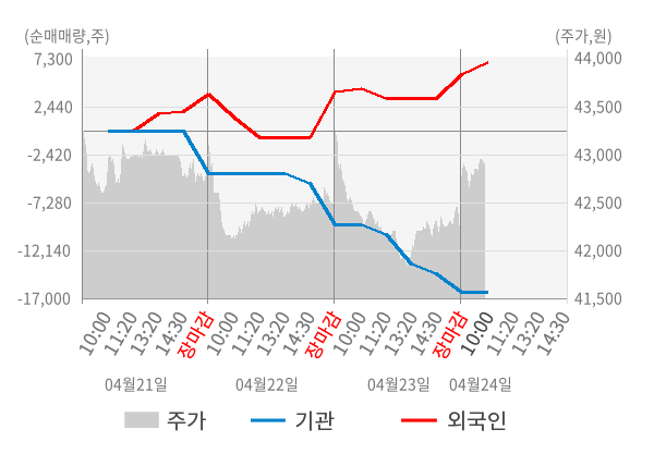 [서울=뉴스핌] 로보뉴스 = 24일 10시 15분 현재 HL홀딩스(060980)는 전일 대비 1.66% (현재가 42,900원) 상승했고, 외국인이 최근 7일 연속 순매수(누적 16,318주, 잠정) 행진을 하고 있다.