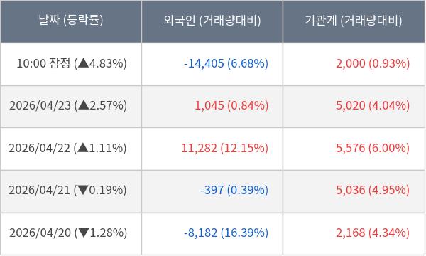 [표] 주요 기관별 순매매량 (단위 주)