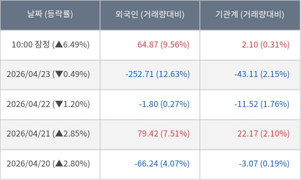 ※ 사모펀드 등 일부 기관의 순매매량은 표시되지 않음