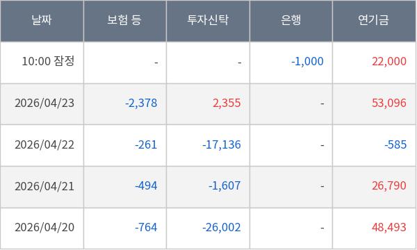 [표] 주요 기관별 순매매량 (단위 주)