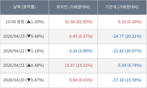 [표] 주요 기관별 순매매량 (단위 만주)