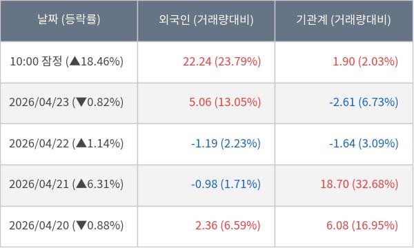 [서울=뉴스핌] 로보뉴스 = 24일 10시 15분 현재 HD현대마린엔진(071970)은 외국인과 기관이 각각 22.24 만 주, 1.90 만 주 순매수(잠정) 하면서 전일 대비 18.46% (현재가 114,200원) 상승하고 있다.