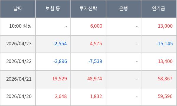 [표] 주요 기관별 순매매량 (단위 주)