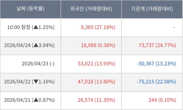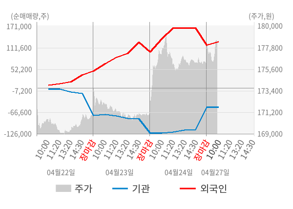 [표] 외국인ㆍ기관 순매매량 (단위 주)