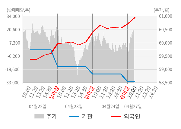 [표] 외국인ㆍ기관 순매매량 (단위 주)