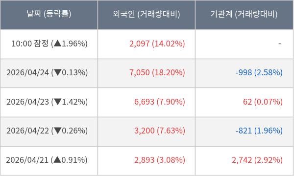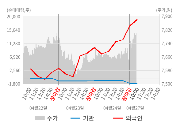 [표] 외국인ㆍ기관 순매매량 (단위 주)