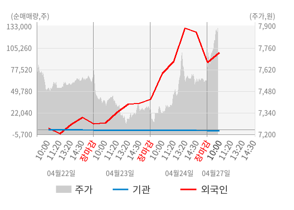 [표] 외국인ㆍ기관 순매매량 (단위 주)