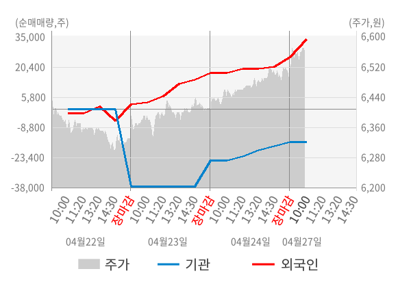 ※ 장중 매매동향은 잠정치이므로 실제 매매동향과 차이가 발생할수 있음