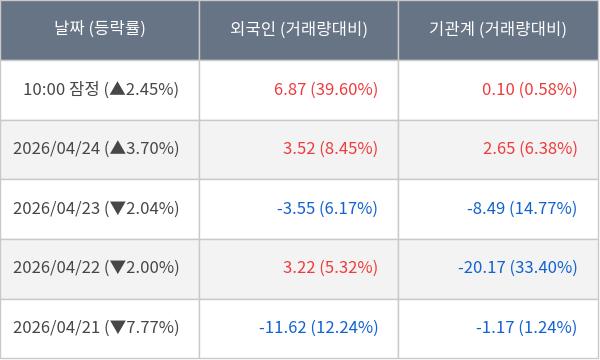 ※ 사모펀드 등 일부 기관의 순매매량은 표시되지 않음