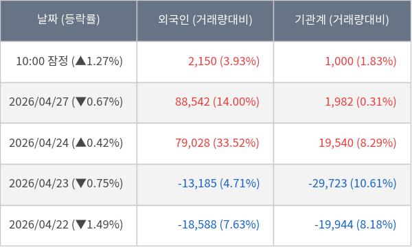 ※ 사모펀드 등 일부 기관의 순매매량은 표시되지 않음