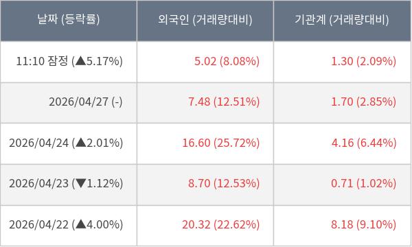 ※ 사모펀드 등 일부 기관의 순매매량은 표시되지 않음