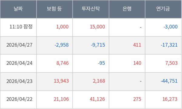 [표] 주요 기관별 순매매량 (단위 주)