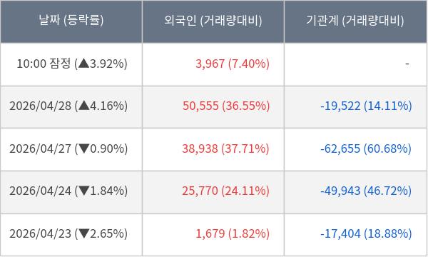 [표] 외국인ㆍ기관 순매매량 (단위 주)