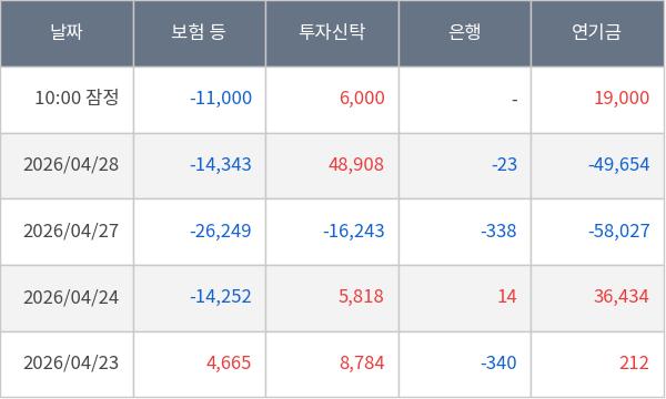 [표] 주요 기관별 순매매량 (단위 주)