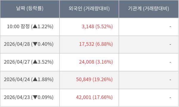 [표] 외국인ㆍ기관 순매매량 (단위 주)