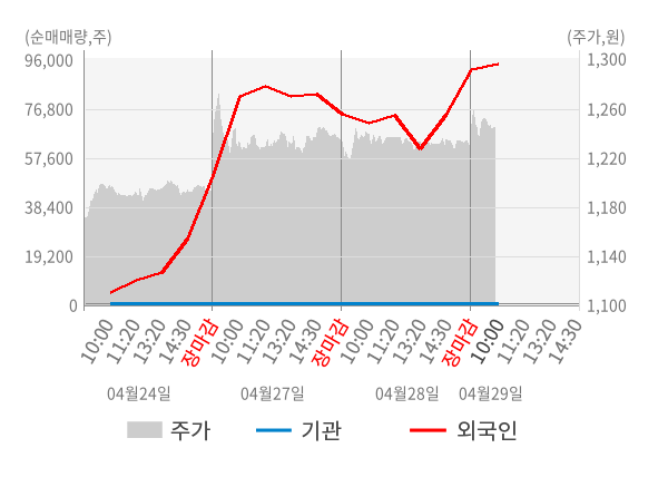 [서울=뉴스핌] 로보뉴스 = 29일 10시 15분 현재 피델릭스(032580)는 전일 대비 1.22% (현재가 1,245원) 상승했고, 외국인이 최근 5일 연속 순매수(누적 13.75만 주, 잠정) 행진을 하고 있다.