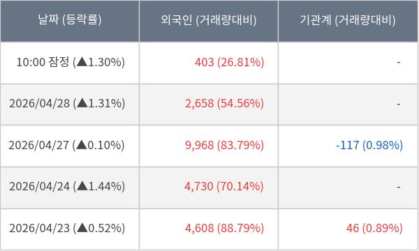 [표] 외국인ㆍ기관 순매매량 (단위 주)