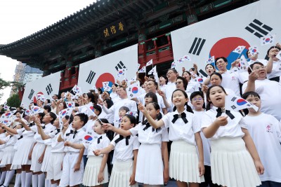 광복절 노래 부르는 서울시 '광복 80주년 경축식' 참석자들
