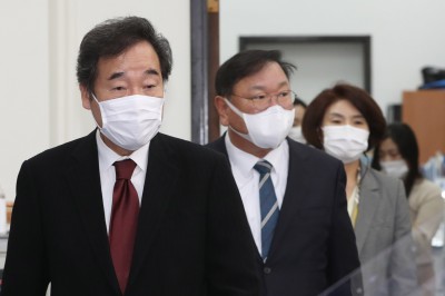 국난극복K-뉴딜위 국난극복본부 점검회의 참석하는 이낙연 - 김태년 - 한정애