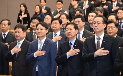 오세훈 서울시장의 '서울시 2026년 신년 직원정례조례' 국민의례