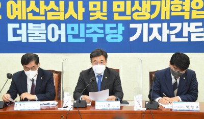 2022년 예산 심사 관련 기자간담회 여는 윤호중 더불어민주당 원내대표