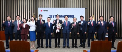 주먹 불끈 쥔 김기현 대표 - 윤재옥 원내대표 - 김가람 최고위원