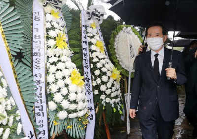 고(故) 김대중 전 대통령 묘역 참배 마친 정세균 후보