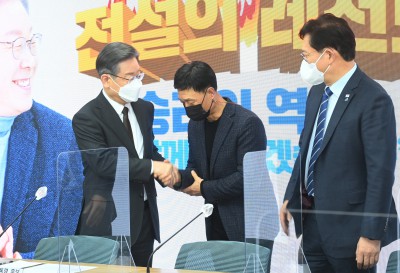 "반갑습니다" 악수하는 이재명 대선후보 - 김영희 PD
