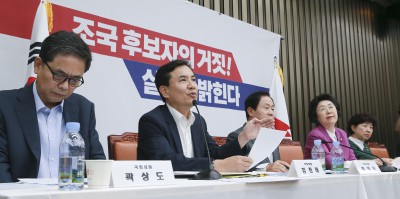 [사진] ‘조국 후보자의 거짓! 실체를 밝힌다 언론 간담회’ 발언 하는 김진태 의원