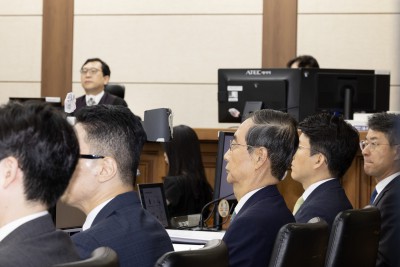 자리 향하는 한덕수 전 국무총리, 내란방조 혐의 첫 재판 출석
