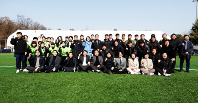 오승록 노원구청장이 파이팅 외치는 ‘초안산스포츠타운 축구장 인조잔디 교체 준공식’
