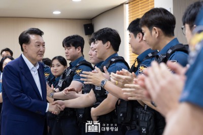 윤 대통령,군 의무대 당직 근무중인 군의관과 의무병 격려