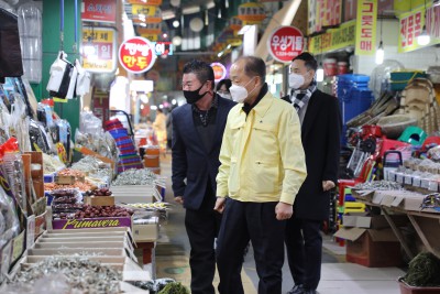 "제철 대하 사볼까" 전통시장서 장보는 서철모 대전 서구청장