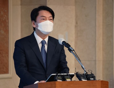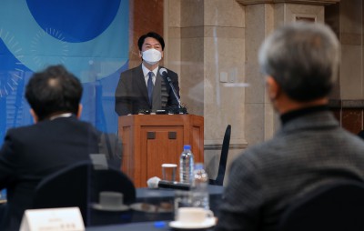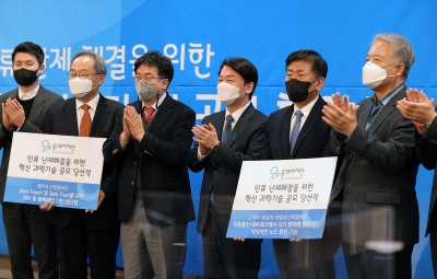 '인류난제 해결 위한 혁신과학기술' 공모 협약식 축사하는 안철수 대선 후보