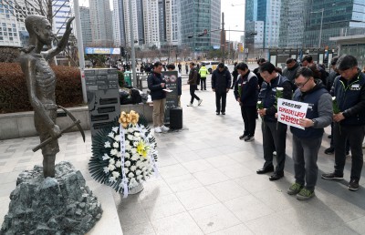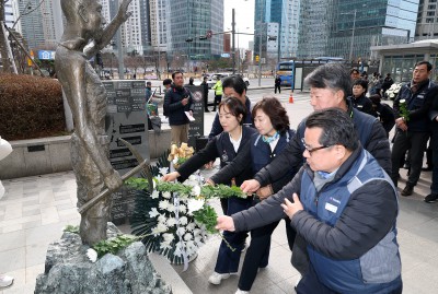 양대노총, 3.1운동 107주년 앞두고 강제징용 노동자상 합동 참배