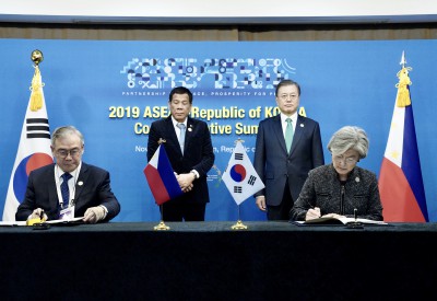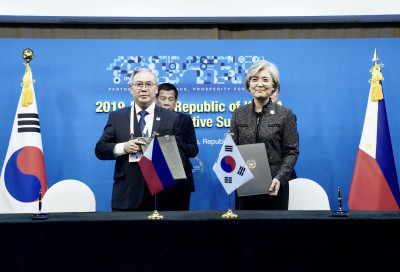 [사진] 협정서명서 손에 든 강경화 - 록신 필리핀 외교장관