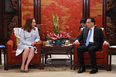 [사진] 아베 日 총리와 마리아 페르난다 에스피노사 유엔총회 의장