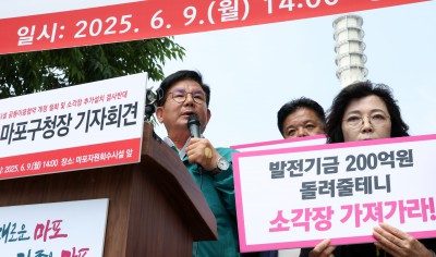 마포구청장, 마포 소각장 앞에서 소각장 추가설치 반대 기자회견