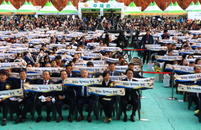 [현장] 가을비도 숨 죽인 '청송사과축제' 열기...나흘째 초만원·초대박 예고