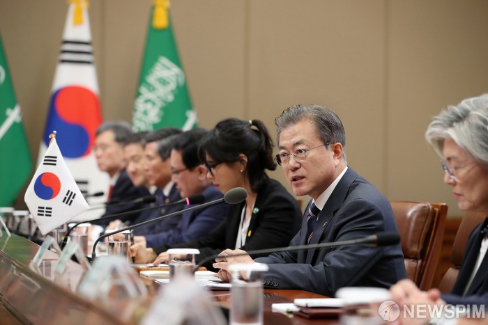 사우디 모하메드 빈 살만 왕세자와 공식회담하는 문대통령
