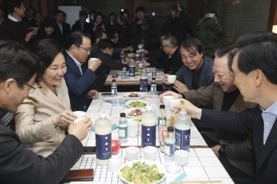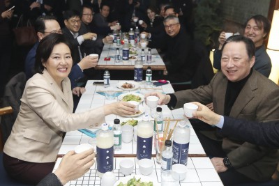 [영상] 박영선 장관·박용만 회장,스타트업 대표들과 '규제개혁 성과' 축하 파티